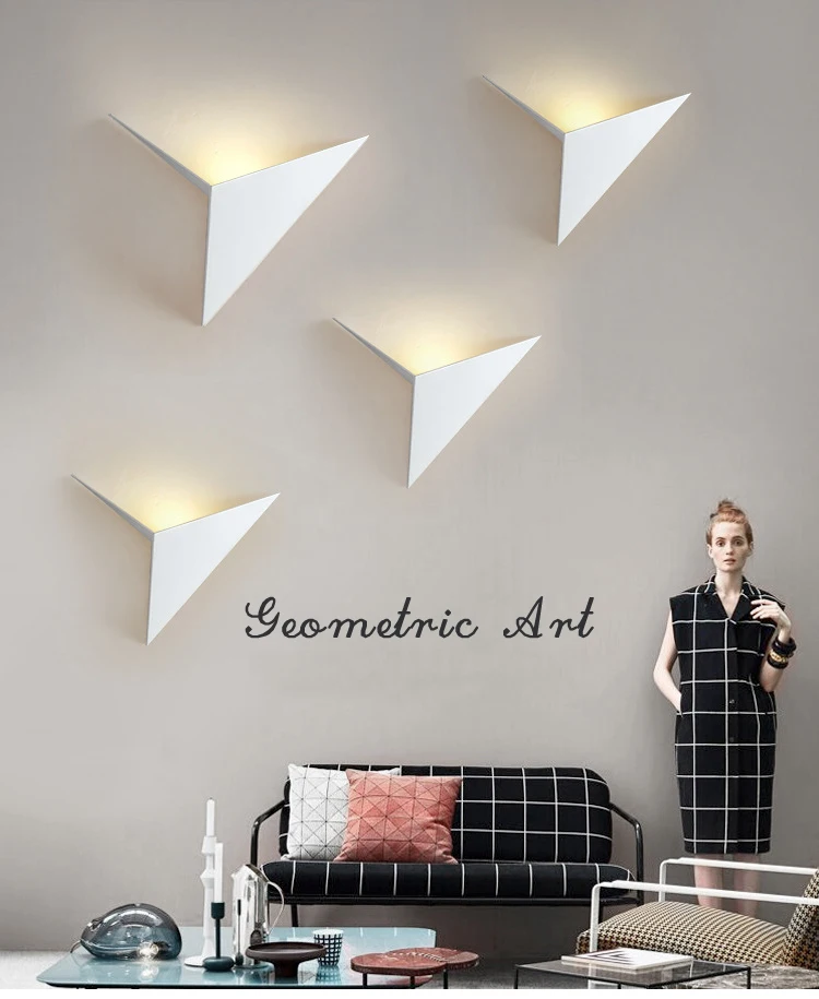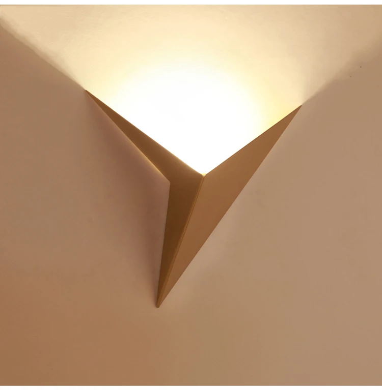 You can see these wall sconces take their cues from the clean, geometric shapes found in modern architecture. At the same time, their form has this flowing, naturalistic quality that reminds me of wings or birds in flight. The overall effect marries the crisp aesthetic of contemporary design with an almost sculptural, natural elegance. These wall sconces would complement a variety of interior design styles from mid-century modern to urban industrial loft spaces. The design is strikingly simple yet visually striking. Each sconce takes the shape of an abstract bird or avian form, with two wings or panels angled to create a V-shape. The three sconces are differentiated by their colors - one is matte black, another is a warm golden or brass tone, and the third is a bright white shade. However, the warm glowing illumination emanating from within the V-shapes softens the look and creates an inviting, cozy ambiance. The tones range from the dark black sconce which appears quite bold and dramatic, to the golden hue exuding warmth and elegance, to the pure white version lending an airy, bright feel.